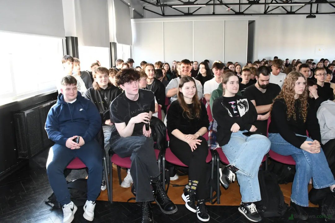 Spotkanie odbyło się w czwartek 6 listopada 2025 roku, a na sali zasiadła młodzież z braniewskich szkół ponadpodstawowych, która od samego początku wykazywała duże zainteresowanie. Pan Marcin twórca popularnych treści edukacyjnych, poprowadził spotkanie w luźnej, przystępnej formie i odpowiadał na licznie zadawane pytania. W trakcie nie brakowało śmiechu, ale też poważnych tematów.