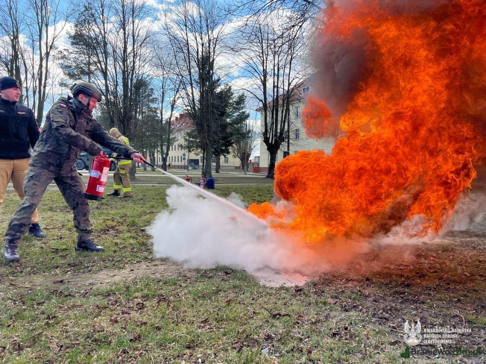 Braniewscy terytorialsi mieli okazję między innymi ćwiczyć techniki tłumienia ognia na manekinach, symulujących ofiary pożaru.