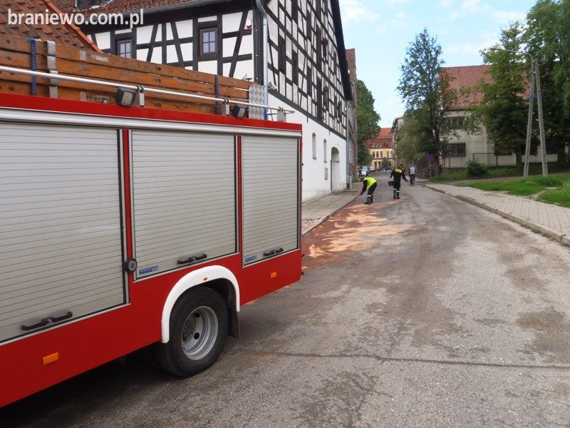W dniu 15.07.2011r., braniewscy strażacy dwa razy dysponowani byli do usunięcia plamy oleju napędowego.