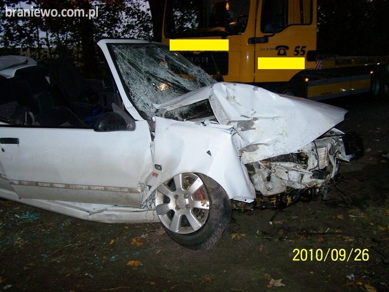 W dniu 26.09.2010r., o godzinie 16.52 Powiatowe Stanowisko Kierowania KP PSP w Braniewie otrzymało zgłoszenie o wypadku drogowym z udziałem pojazdu osobowego marki Renault 19.