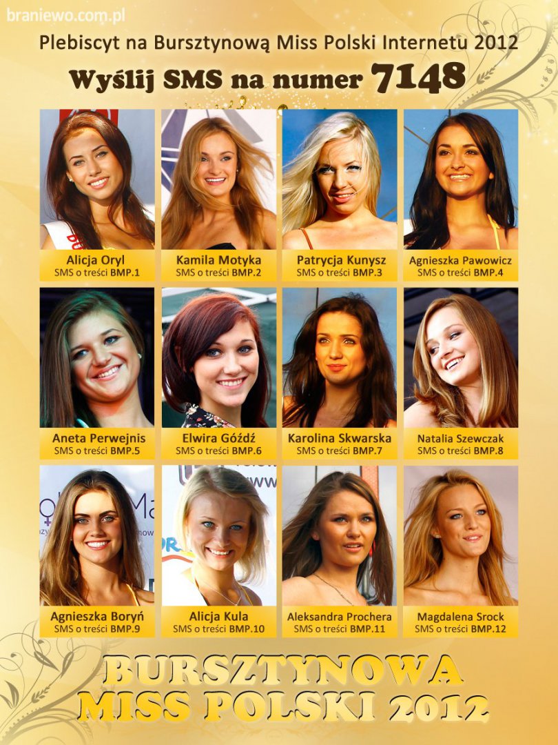 1 sierpnia ruszył plebiscyt na Bursztynową Miss Polski Internetu 2012. Tytuł trafi do jednej z 12 finalistek konkursu Bursztynowa Miss Polski 2012, która zdobędzie najwięcej głosów oddanych drogą smsową. Na głosujących czeka atrakcyjna nagroda - tablet marki Tracer OVO oraz możliwość osobistej koronacji zwyciężczyni plebiscytu. W gronie walczących o tytuł są dwie kandydatki z Braniewa: Kamila Motyka i Elwira Góźdź.