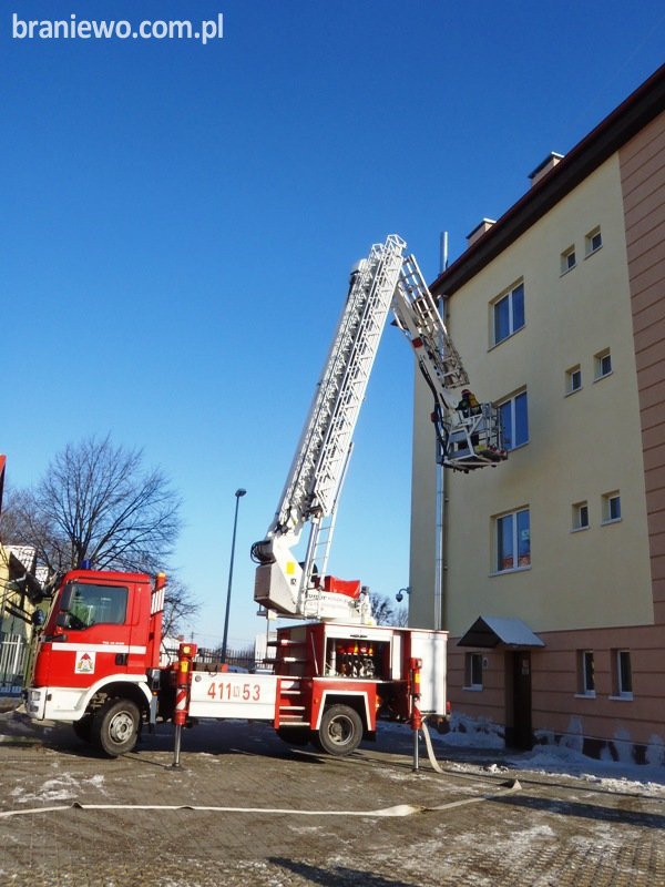 Pożar w budynku straży granicznej w Braniewie ćwiczenia.