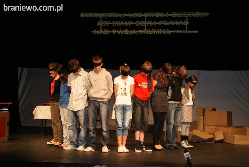 To przedstawienie o tematyce prewencyjnej powinien obejrzeć każdy rodzic. Grupa teatralna młodzieży gimnazjum nr 2 w Braniewie poruszyła bardzo ważny temat relacji dziecka z rodzicem, a właściwie ich braku. W przedstawionych scenkach młodzi aktorzy w obrazowy i ekspresyjny sposób przypomnieli nam dorosłym, jak bardzo potrafimy zatracić się w codzienności, tracąc z oczu to co najważniejsze kontakt z dzieckiem. Skutki tego braku miały tragiczny finał.