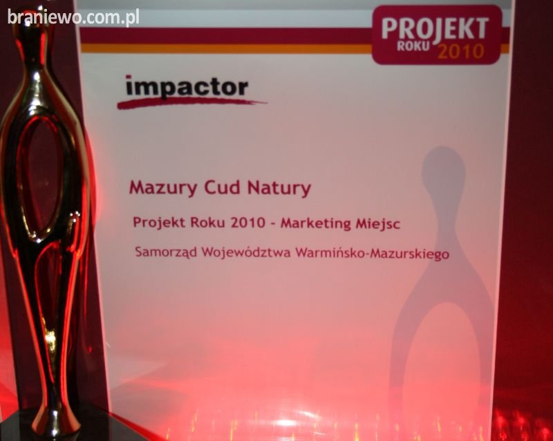 Kampania promocyjna Samorządu Województwa Warmińsko-Mazurskiego Mazury Cud Natury prowadzona w ramach światowego konkursu New7Wonders na 7 Nowych Cudów Natury, została uznana Projektem Roku w kategorii Marketing Miejsc. Nagrodę wręczono wieczorem 1 marca 2011 r. w Warszawie podczas gali 13. edycji konkursu Impactor najstarszego konkursu Polskiego Przemysłu Mediowego i Marketingowego.
