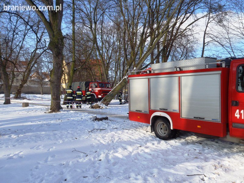 We wtorek kilka minut po godzinie czternastej braniewscy strażacy otrzymali zgłoszenie o pochylonym drzewie znajdującym się na terenie remontowanego amfiteatru miejskiego.