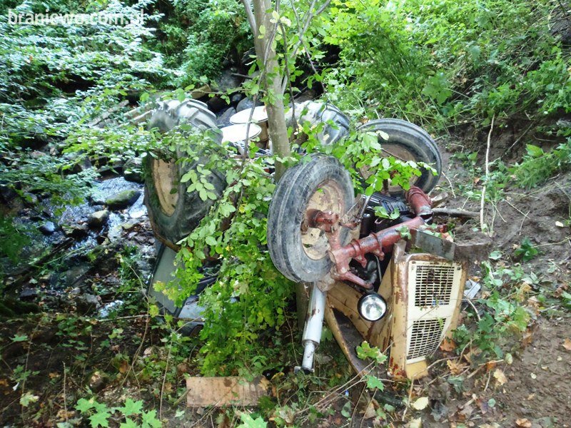 W dniu 06.09.2011r., o godz. 17.31 służba dyżurna Powiatowego Stanowiska Kierowania KP PSP w Braniewie otrzymała zgłoszenie dotyczące mężczyzny przygniecionego przez ciągnik rolniczy.