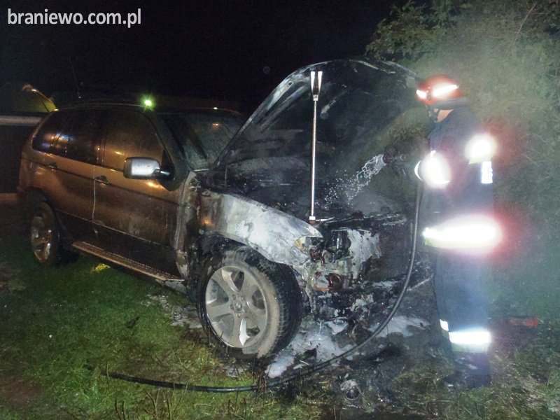 W dniu 23.08.2011r., o godz. 02.24 braniewscy strażacy otrzymali zgłoszenie dotyczące pożar pojazdu osobowego marki BMW X5.