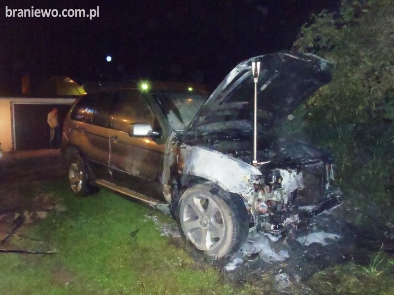 W dniu 23.08.2011r., o godz. 02.24 braniewscy strażacy otrzymali zgłoszenie dotyczące pożar pojazdu osobowego marki BMW X5.