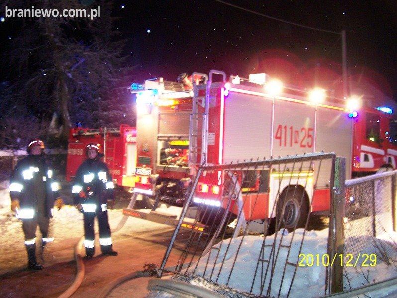 W dniu 28.12.2010r., o godz. 03.42 braniewscy strażacy otrzymali zgłoszenie o pożarze budynku mieszkalnego dwurodzinnego w miejscowości Wyszkowo gmina Lelkowo.