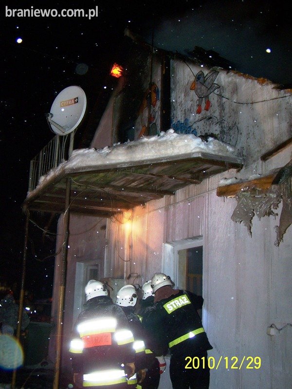 W dniu 28.12.2010r., o godz. 03.42 braniewscy strażacy otrzymali zgłoszenie o pożarze budynku mieszkalnego dwurodzinnego w miejscowości Wyszkowo gmina Lelkowo.