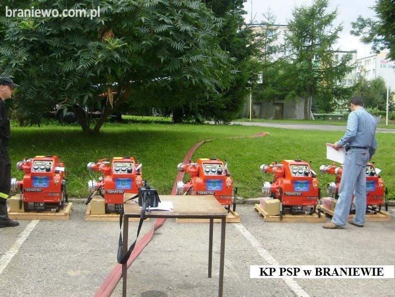 W piątek 20 sierpnia 2010r, strażacy ochotnicy z powiatu braniewskiego wraz ze strażakami z innych powiatów odebrali nowe motopompy pożarnicze M 8/8 Tohatsu VC72AS.