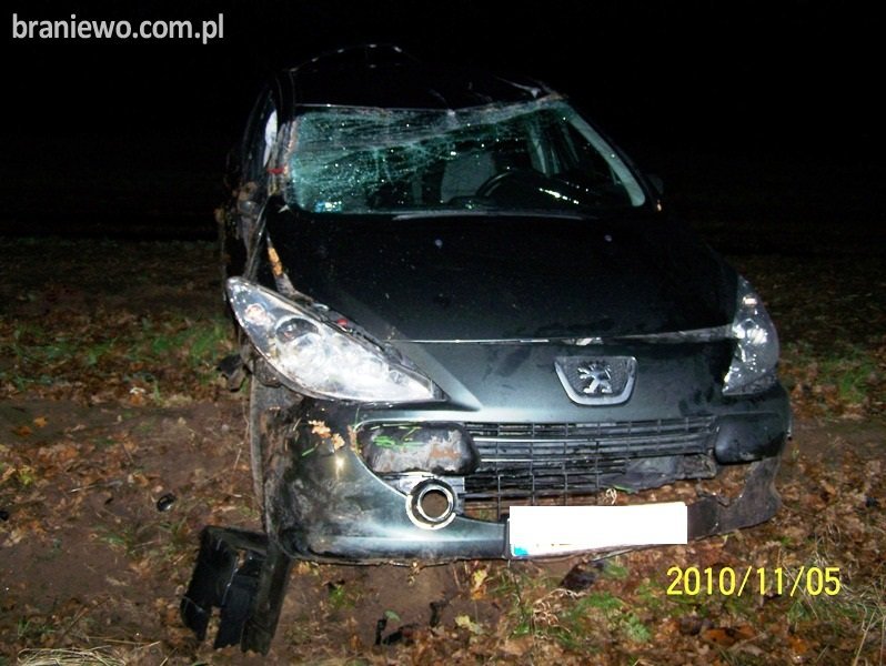W piątek 05.11.2010r., o godz. 16.34 braniewscy strażacy otrzymali zgłoszenie o wypadku drogowym z udziałem pojazdu osobowego Peugeot 307. Do wypadku doszło na prostym odcinku drogi powiatowej pomiędzy miejscowościami Bemowizno Płoskinia.