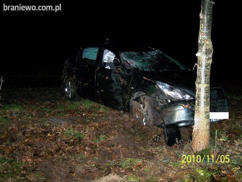 W piątek 05.11.2010r., o godz. 16.34 braniewscy strażacy otrzymali zgłoszenie o wypadku drogowym z udziałem pojazdu osobowego Peugeot 307. Do wypadku doszło na prostym odcinku drogi powiatowej pomiędzy miejscowościami Bemowizno Płoskinia.
