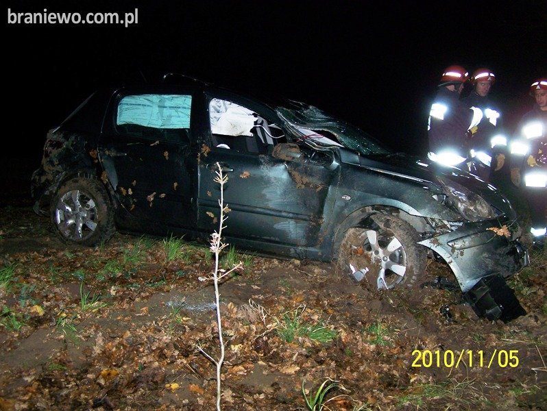 W piątek 05.11.2010r., o godz. 16.34 braniewscy strażacy otrzymali zgłoszenie o wypadku drogowym z udziałem pojazdu osobowego Peugeot 307. Do wypadku doszło na prostym odcinku drogi powiatowej pomiędzy miejscowościami Bemowizno Płoskinia.
