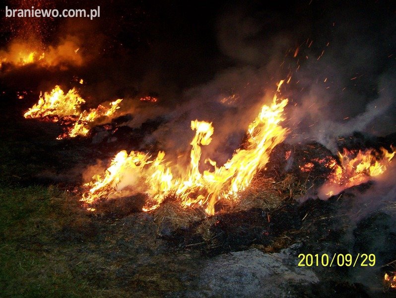 W dniu 29.09.2010r., o godz. 19.21 braniewscy strażacy ponownie otrzymali zgłoszenie o pożarze balotów słomy w miejscowości Cielętnik gmina Braniewo.