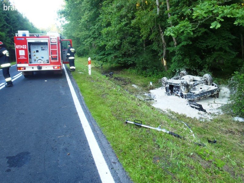 W dniu 29.06.2011r., około godziny 05.00 braniewscy strażacy otrzymali zgłoszenie o wypadku na drodze krajowej K54. Pojazd osobowymi marki BMW 3 wypadł z drogi a następnie dachował.