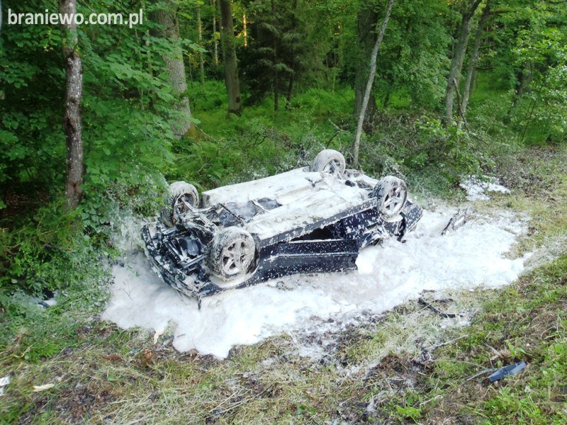 W dniu 29.06.2011r., około godziny 05.00 braniewscy strażacy otrzymali zgłoszenie o wypadku na drodze krajowej K54. Pojazd osobowymi marki BMW 3 wypadł z drogi a następnie dachował.