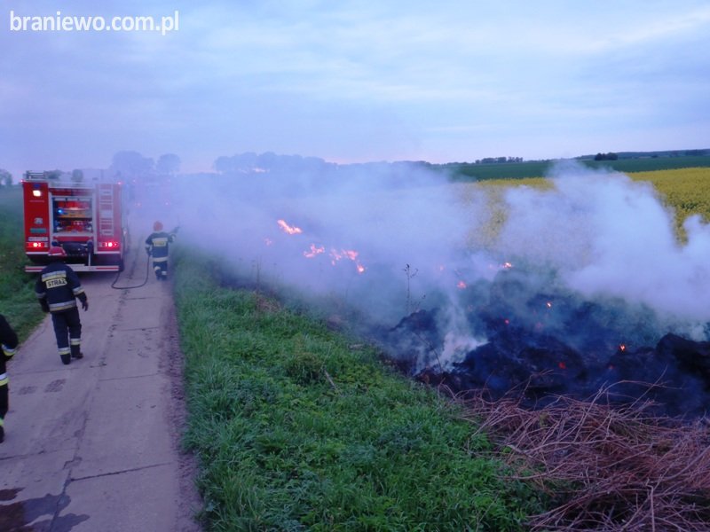 W dniu 15.05.2012r., o godz. 18.49 braniewscy strażacy otrzymali zgłoszenie o pożarze balotów słomy zgromadzonych w Braniewie przy ulicy Wiejskiej /w pobliżu drogi do Starej Pasłęki/.