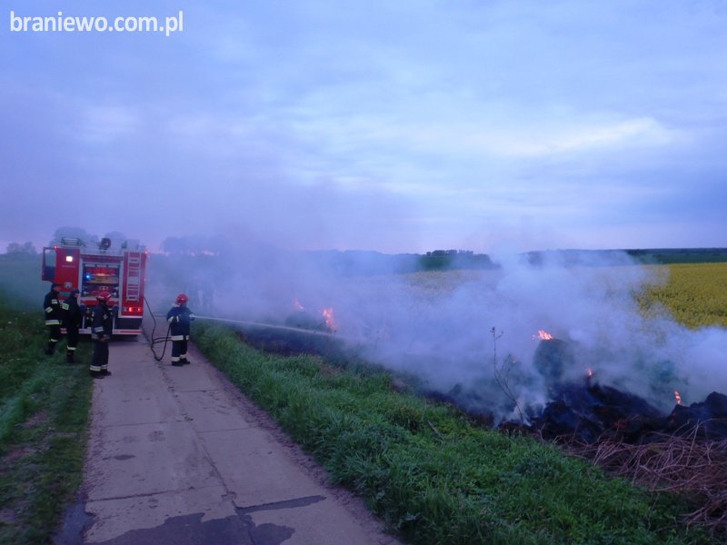 W dniu 15.05.2012r., o godz. 18.49 braniewscy strażacy otrzymali zgłoszenie o pożarze balotów słomy zgromadzonych w Braniewie przy ulicy Wiejskiej /w pobliżu drogi do Starej Pasłęki/.