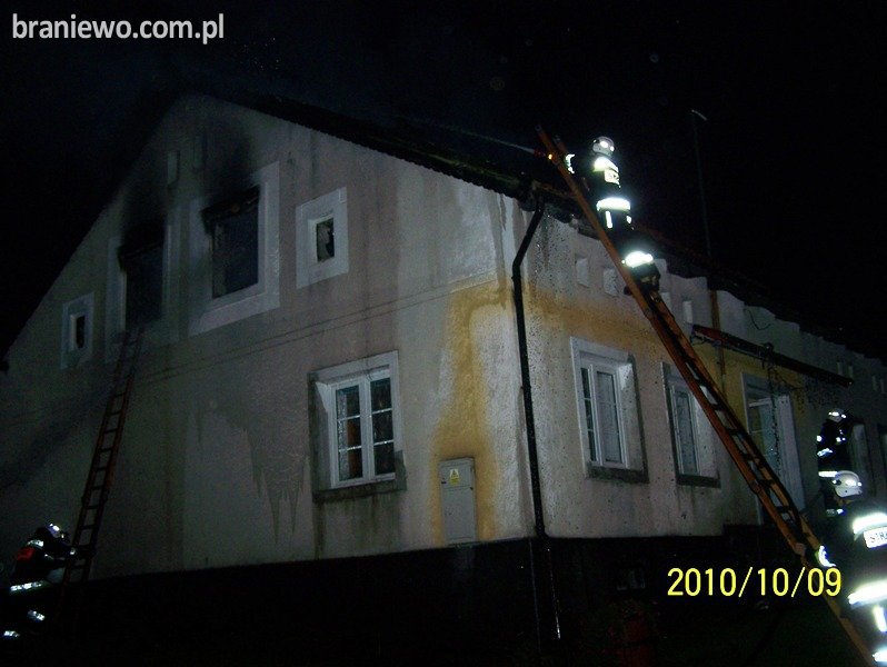 W dniu 09.10.2010r., o godzinie 21.01 braniewscy strażacy otrzymali zgłoszenie o pożarze budynku mieszkalnego jednorodzinnego w miejscowości Dębiny gmina Wilczęta.