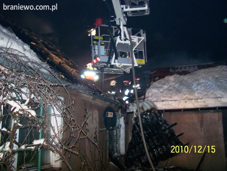 W środę 15.12.2010r., o godz. 20.13 braniewscy strażacy zostali poinformowani o pożarze poddasza budynku mieszkalnego dwurodzinnego położonego w miejscowości Żelazna Góra gmina Braniewo.