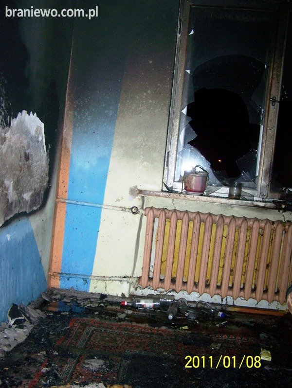 W sobotę 08.01.2011r., o godz. 19.31 braniewscy strażacy otrzymali zgłoszenie o pożarze mieszkania w budynku dwurodzinnym w miejscowości Rogity gmina Braniewo.