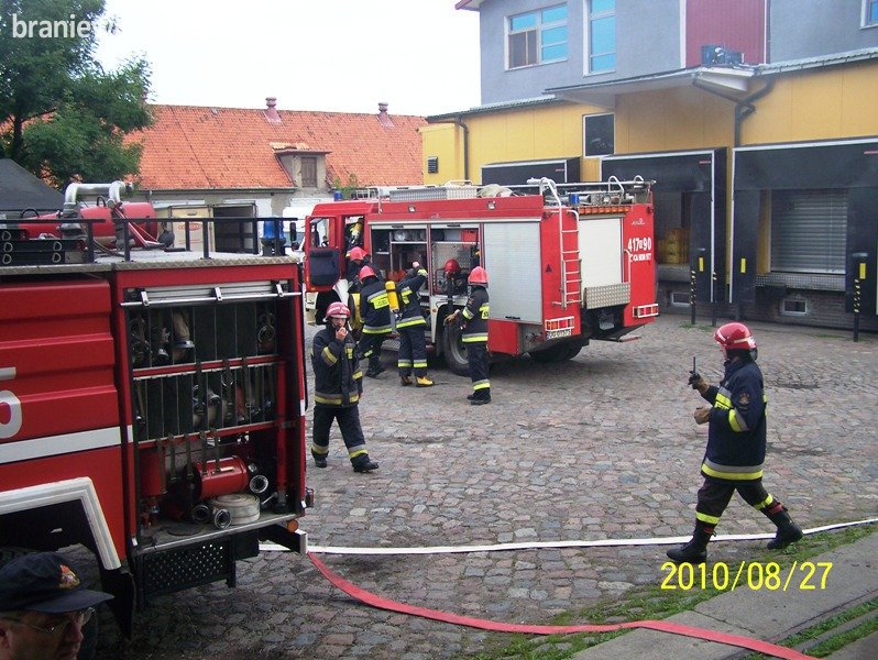 W piątek 27.08.2010r., o godzinie 08.00 braniewscy strażacy zostali wezwani do pożaru w pomieszczeniach byłej kotłowni należącej do magazynów zbożowych firmy Elewarr w Braniewie przy ulicy Stefczyka.