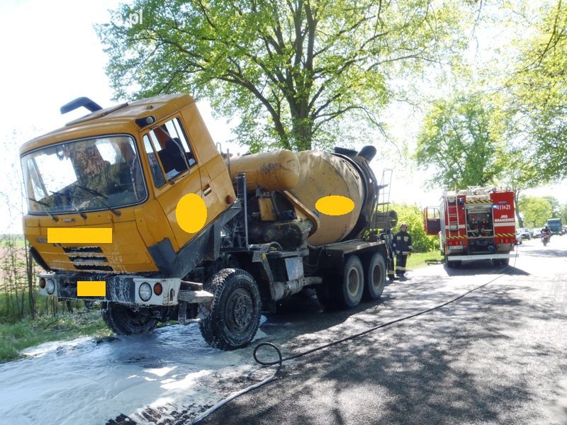 W dniu 11.05.2011r., kilka minut po godzinie czternastej braniewscy strażacy otrzymali zgłoszenie o pożarze pojazdu ciężarowego - betoniarki marki Tatra.
