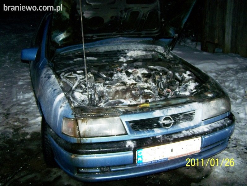 W środę 26.01.2011r., o godz. 16.05 służba dyżurna Powiatowego Stanowiska Kierowania KP PSP w Braniewie otrzymała zgłoszenie o pożarze pojazdu osobowego marki Opel Vectra w miejscowości Kajnity gmina Pieniężno.