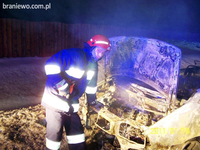 W poniedziałek 10.01.2011r., o godz. 19.53 strażacy z Jednostki Ratowniczo Gaśniczej w Braniewie otrzymali zgłoszenie o pożarze samochodu osobowego marki Citroen Evasion.
