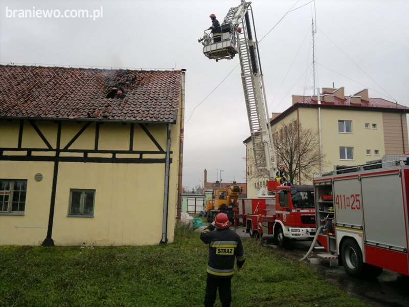 W dniu 25 października kilka minut przed godz. 13:00, służba dyżurna Powiatowego Stanowiska Kierowania Państwowej Straży Pożarnej w Braniewie otrzymała zgłoszenie o pożarze dachu budynku stolarni.