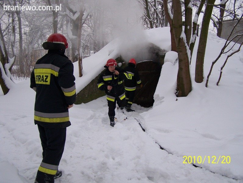 W dniu 20.12.2010r., o godz. 13.57 braniewscy strażacy otrzymali zgłoszenie o pożarze w opuszczonym poniemieckim bunkrze schronie w Braniewie przy ulicy Dworcowej.
