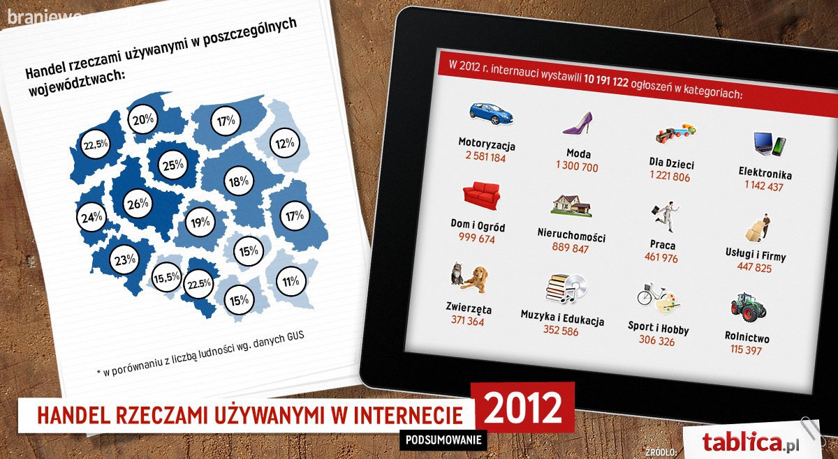 Przepełnione piwnice czy zagracone poddasza powoli przechodzą do przeszłości. Jak wynika z badania serwisu Tablica.pl, wykonanego przez TNS Polska, aż 78 proc. Polaków pozbywa się nieużywanych przez siebie przedmiotów. Część z nich trafia w ręce nowych właścicieli tylko w ubiegłym roku internauci wystawili ponad 10 mln ofert dotyczących sprzedaży rzeczy z drugiej ręki. Mieszkańcy Warmii i Mazur najchętniej sprzedają samochody, odzież i akcesoria dla dzieci.
