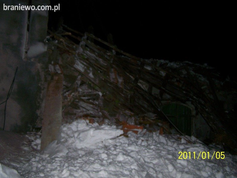 We wtorek 04.01.2011r., o godz. 21.45 braniewscy strażacy otrzymali zgłoszenie dotyczące zawalenia się konstrukcji dachu budynku gospodarczego w miejscowości Głębock gmina Lelkowo.