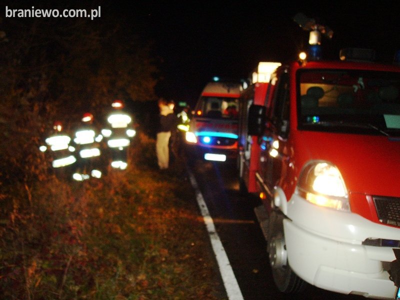 W poniedziałek 25.10.2010r., o godz. 22.45 do Powiatowego Stanowiska Kierowania w Braniewie wpłynęło zgłoszenie o wypadku drogowym z udziałem pojazdu osobowego marki VW Passat.