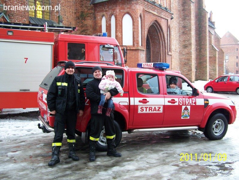 Strażacy Państwowej Straży Pożarnej w Braniewie uczestniczą czynnie w kolejnym finale WOŚP bezwątpienia niepowtarzalnym przeżyciem była licytacja podróży 25 metrowym podnośnikiem hydraulicznym /3 osoby w Braniewie oraz 3 osoby we Fromborku/.
