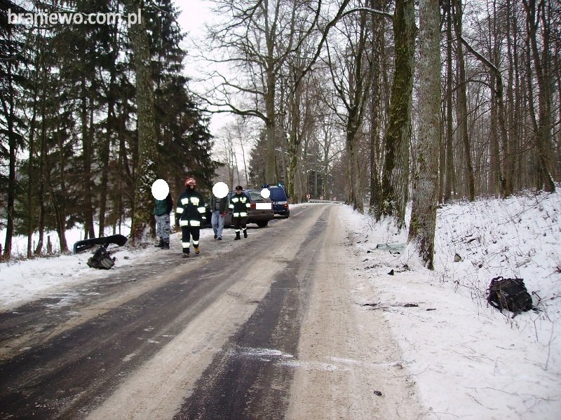 W niedzielę 05.12.2010r., o godz. 11.38 braniewscy strażacy otrzymali zgłoszenie o wypadku drogowym z udziałem pojazdu osobowego marki VW Sharon. Do zdarzenia doszło na drodze powiatowej pomiędzy miejscowościami Pakosze Kierpajny Wielkie gmina Pieniężno.