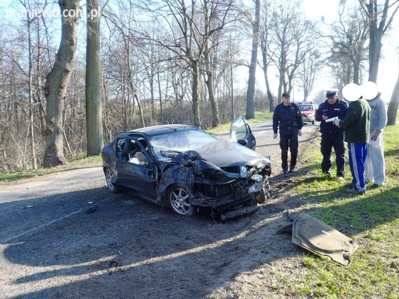 W dniu 20.04.2011r. , o godz. 07.45 braniewscy strażacy otrzymali zgłoszenie o wypadku drogowym z udziałem pojazdu osobowego marki Renault Megane.