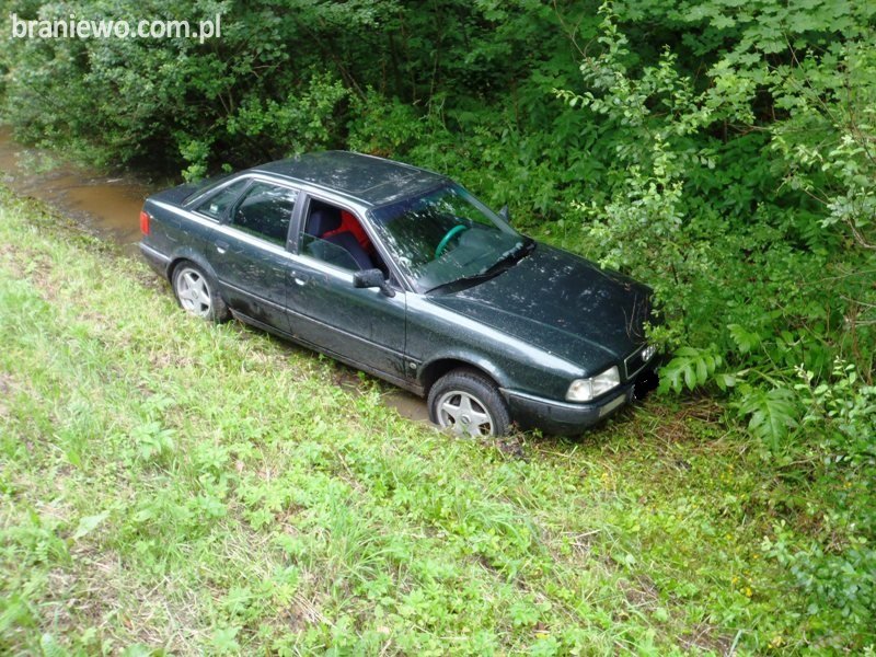 W niedziele 03.07.201r., o godz. 15.06 braniewscy strażacy otrzymali zgłoszenie o wypadku drogowym na drodze krajowej K54. Pojazd osobowy Audi 80 zjechał z drogi i wpadł do przydrożnego rowu.