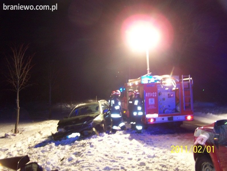 We wtorek 01.02.2011r., o godz. 16.39 braniewscy strażacy otrzymali zgłoszenie o wypadku drogowym z udziałem dwóch pojazdów osobowym: Daihatsu Charade oraz Volvo V40.