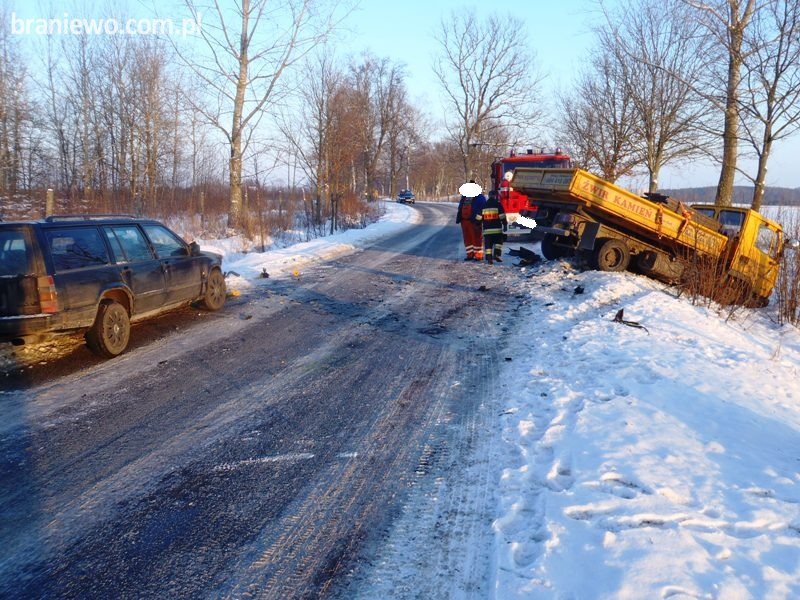 27 stycznia 2012r., o godz. 15.53 braniewscy strażacy otrzymali zgłoszenie o wypadku drogowym z udziałem pojazdu osobowego marki Volvo oraz ciężarowego marki Daf. Do wypadku doszło na drodze powiatowej Pieniężno Pakosze około 2 km od Pieniężna.