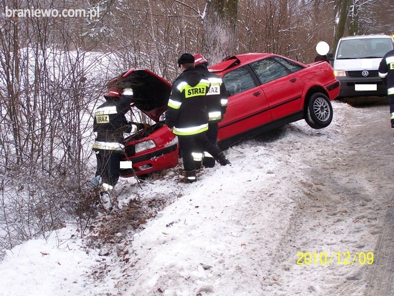 W dniu 09.12.2010r., o godz. 13.32 braniewscy strażacy zostali poinformowani o wypadku drogowym z udziałem pojazdu osobowego marki Audi. Do zdarzenia doszło na prostym odcinku drogi wojewódzkiej W507 pomiędzy