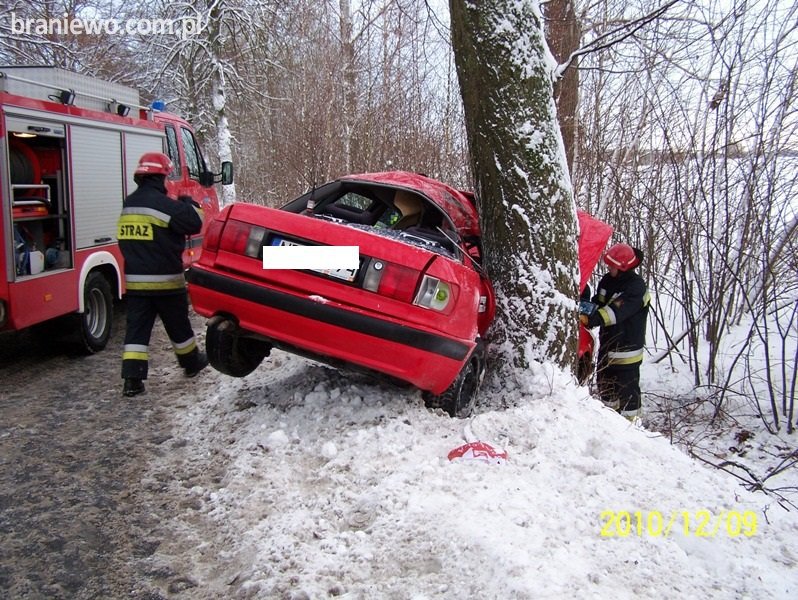W dniu 09.12.2010r., o godz. 13.32 braniewscy strażacy zostali poinformowani o wypadku drogowym z udziałem pojazdu osobowego marki Audi. Do zdarzenia doszło na prostym odcinku drogi wojewódzkiej W507 pomiędzy