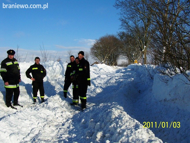 W dniu 01.01.2011r., braniewscy strażacy odnotowali kilka zdarzeń związanych z udzieleniem pomocy dla mieszkańców powiatu braniewskiego, którzy utknęli w drogowych zaspach.